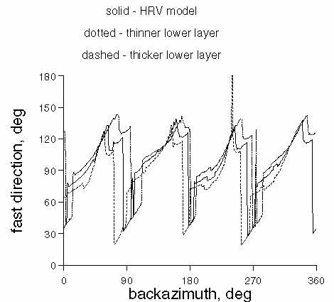 from minor perturbations to the anisotropic model shown on Figure 9 and in Table 3. Thicknesses of two anisotropic layers in the HRV model (solid line) were perturbed by