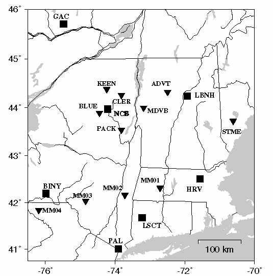 and stations deployed by the authors (see Table 3). The network configuration shown was deployed during the spring and summer of 1995. (Postscript Version).