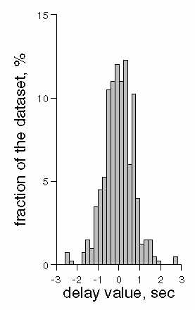 Figure 6. A histogram of relative traveltime delays determined for the network.