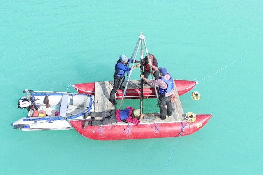 Reconstructing Greenland’s Ice Margin. Sediment samples for radiocarbon dating were cored from pro-glacial lakes, lakes created along the ice sheet margin from glacial meltwater that track ice sheet retreat and expansion. Quartz rock samples were collected from both free standing glacial erratics and rows of rocky moraines deposited along the ice sheet margin for paired Carbon14 /Beryllium10 dating. Both the mud and rock samples are used to constrain Greenland’s minimal Holocene ice edge.