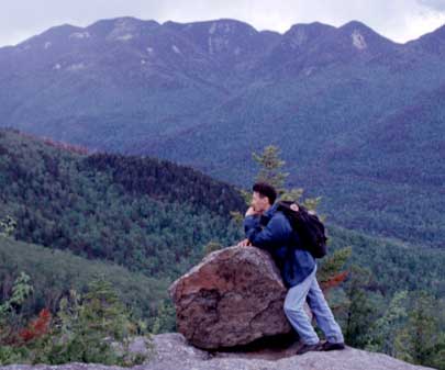 A Gothic Thinker in front of the Great Range, Adirondack State Park, NY.