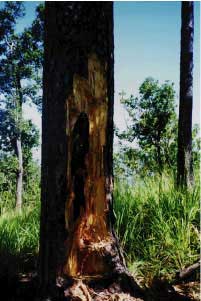 Research methods by Tongjit and Buckley are being tested in the relatively controlled environs of the Queen Sirikit Botanic Garden, and at nearby Doi Inthanon National Park. An economic index of the monetary value per unit area of removed stem material, versus a biotic index of assessed physical damage is being developed that will assist policy makers in deciding the best course of action in the future. As noted during field studies in several locations, both pine species seem to be able to tolerate surprisingly extensive damage. Mortality in most noted occurrences seemed to result more from structural failure of the stem where trees have toppled. To what degree the inflicted damage is largely aesthetic is an important aim of the study.