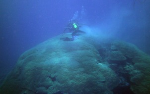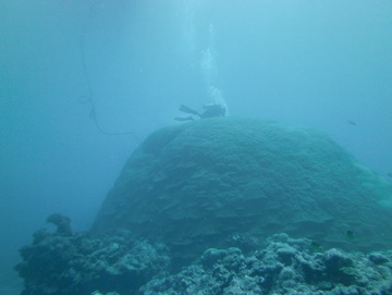 I traveled to American Samoa in November 2011 to collect cores from a massive Porites coral colony off the island of Ta'u. Along with my colleagues Robert Dunbar and David Mucciarone from Stanford University, we recovered three cores (4m, 4.1m, and 6.1m). We sealed all 3 drill holes when we were done with concrete plugs. The longest core extends from 2011 to 1521 C.E. Data from these samples is helping us understand El Nino Southern Oscillation (ENSO) dynamics and changes in coral calcification processes in response to atmospheric CO2 influx into the surface ocean. See these papers on my main LDEO page.