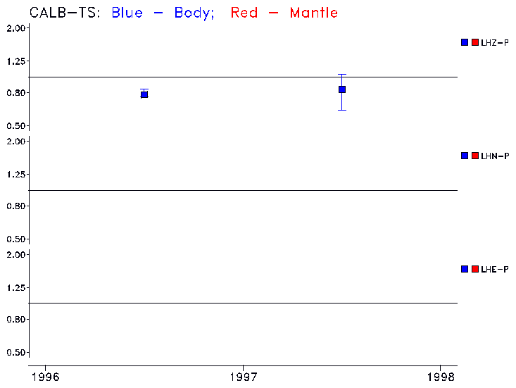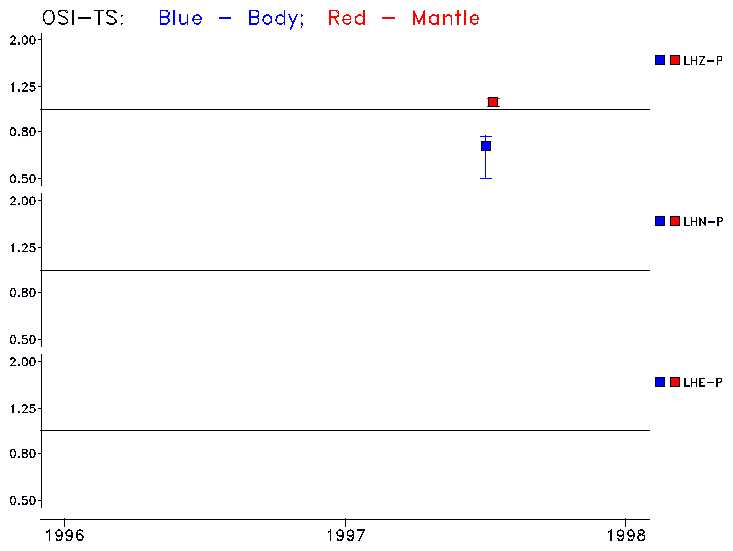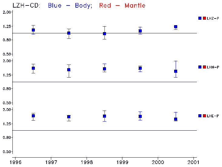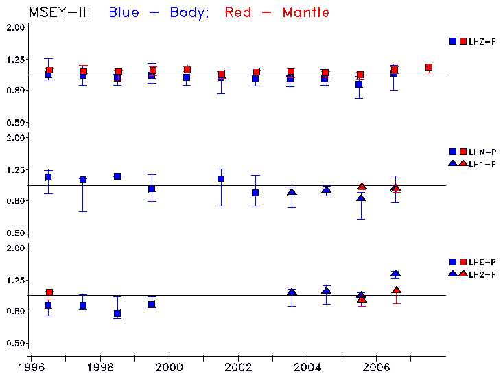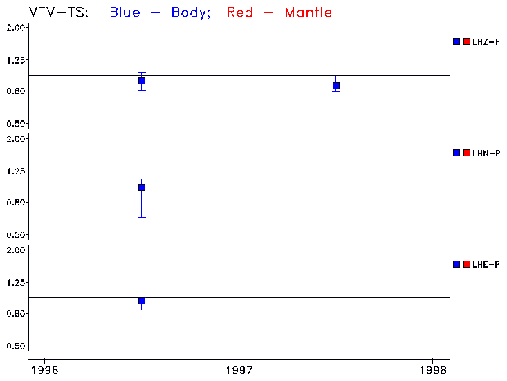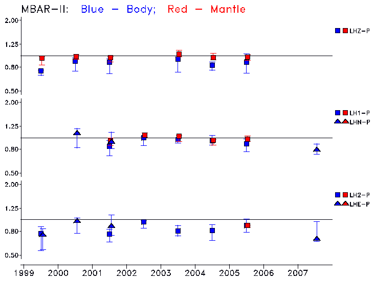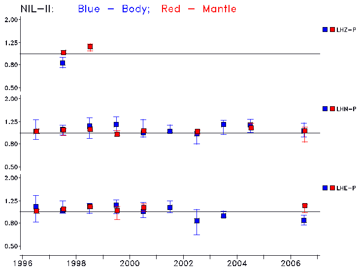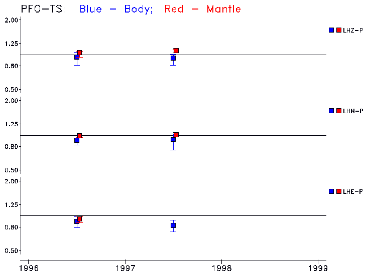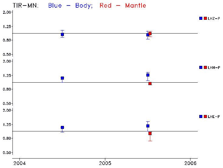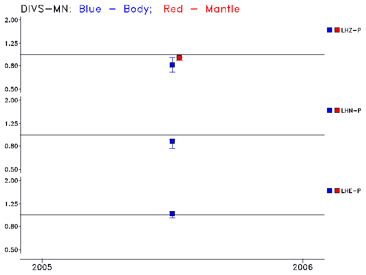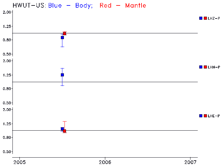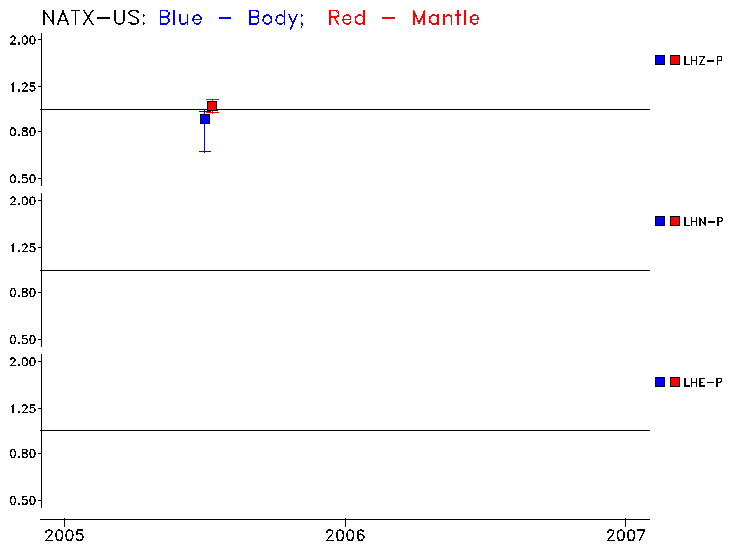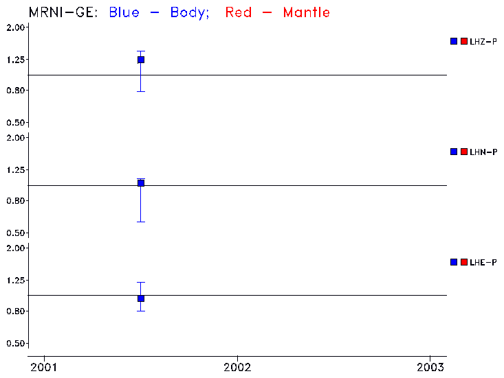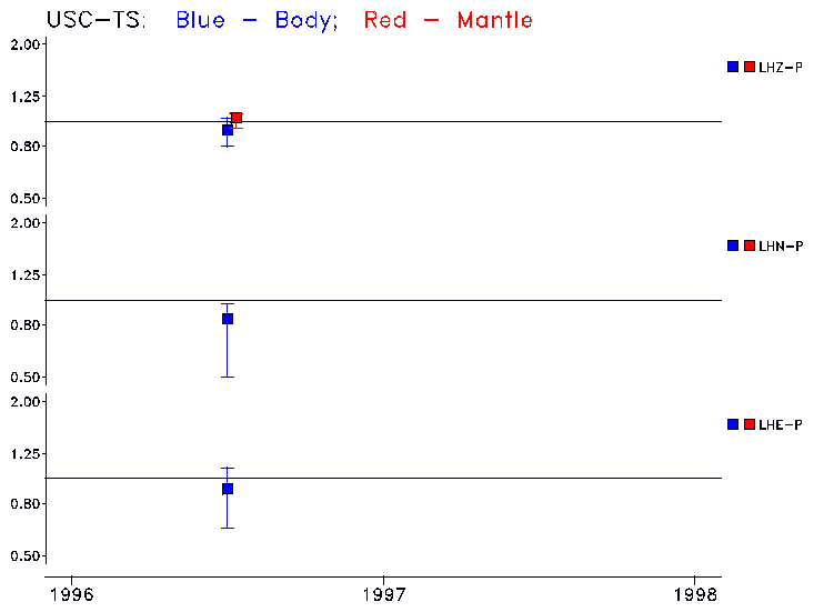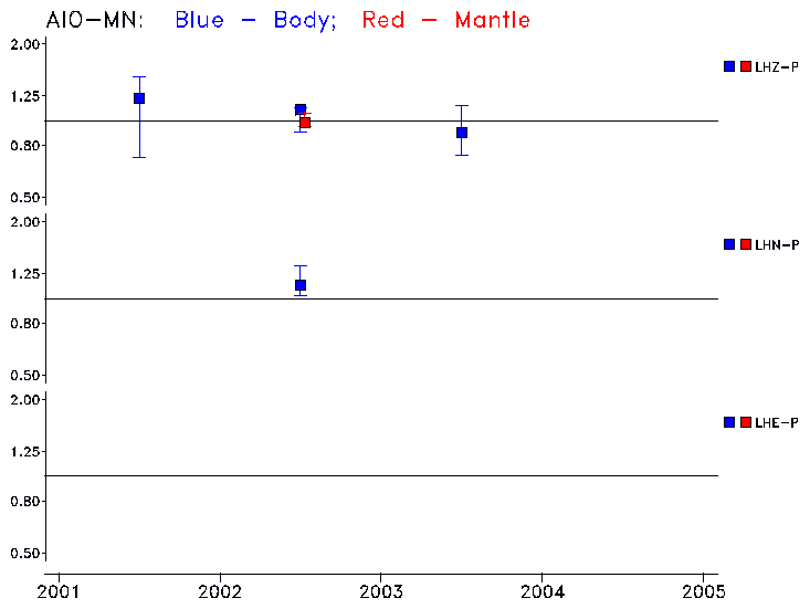 Earthquakes larger than M=6.5 are included in the analysis. Standard time windows are selected, and corresponding synthetic seismograms calculated For seismograms that have a correlation greater than 0.75, an optimal scaling factor (the factor by which the synthetic should be scaled to best match the observed seismogram) is calculated. A median scaling factor for each year is also calculated and displayed, together with limits for the two central quartiles.