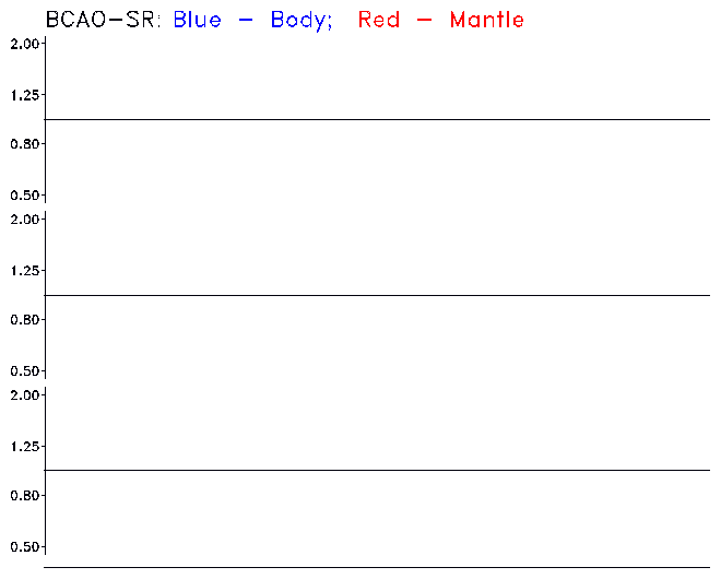 Three different data types are considered: mantle waves with Three different data types are considered: body waves with peak sensitvity between 50 and 75 seconds, mantle waves with peak sensitvity between 200 and 250 seconds, and surface waves with peak sensitvity between 50 and 75 seconds.