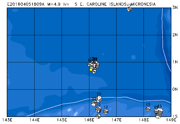 043 E. CAROLINE ISLANDS, MICRONESIA PDEW h= 6 M=4.9 E201604051809A