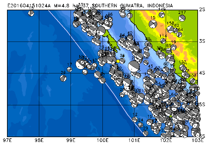 254 SOUTHWEST OF SUMATRA, INDONESIA PDEW h= 10 M=5.2 E201604240432A