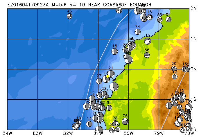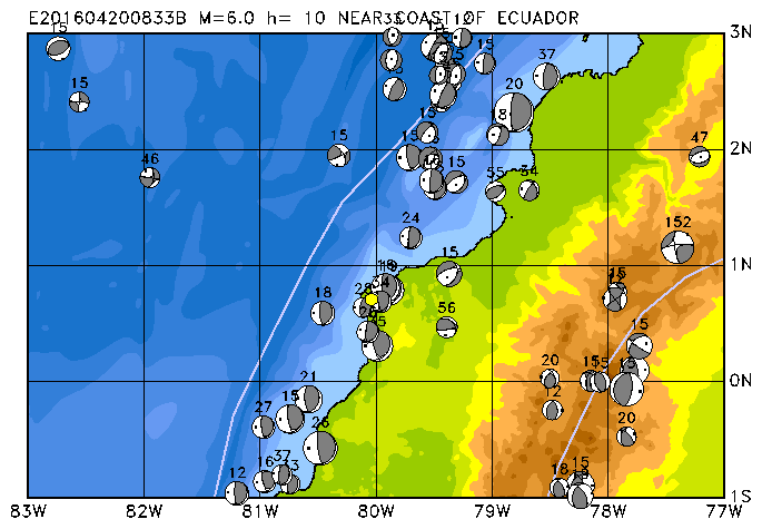 215 NEAR COAST OF ECUADOR PDEW h= 10 M=6.0 E201604200833B