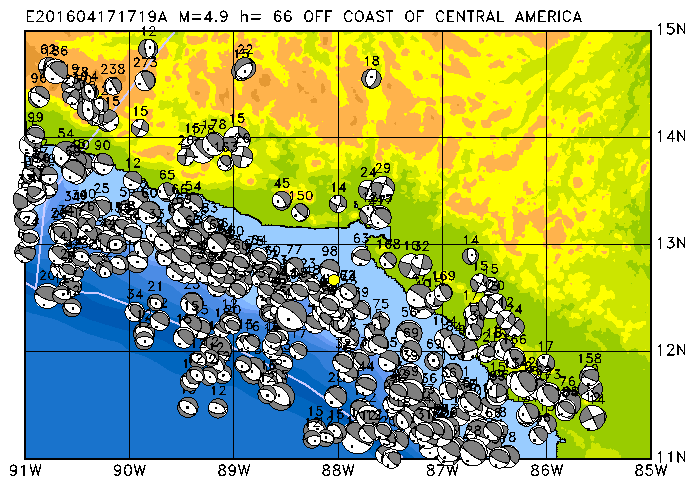 005 NEAR COAST OF NICARAGUA PDEW h= 40 M=4.8 E201604011844A