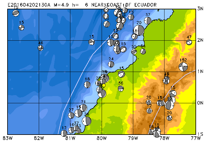 223 NEAR COAST OF ECUADOR PDEW h= 6 M=4.9 E201604202130A