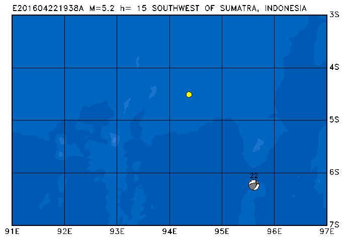 243 SOUTHWEST OF SUMATRA, INDONESIA PDEW h= 15 M=5.2 E201604221938A
