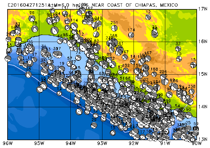 281 NEAR COAST OF CHIAPAS, MEXICO PDEW h= 16 M=6.0 E201604271251A
