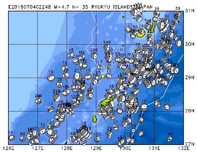 023 RYUKYU ISLANDS, JAPAN PDEW h= 35 M=4.7 E201607040224B