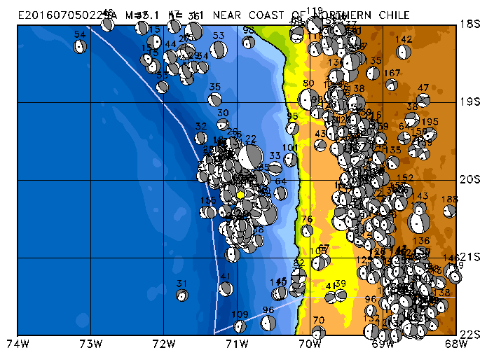 225 NEAR COAST OF NORTHERN CHILE PDEW h= 72 M=6.1 E201607251726A