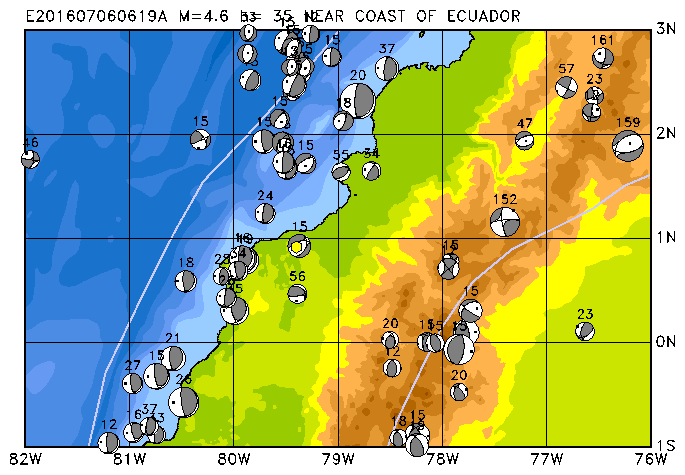 043 NEAR COAST OF ECUADOR PDEW h= 35 M=4.6 E201607060619A
