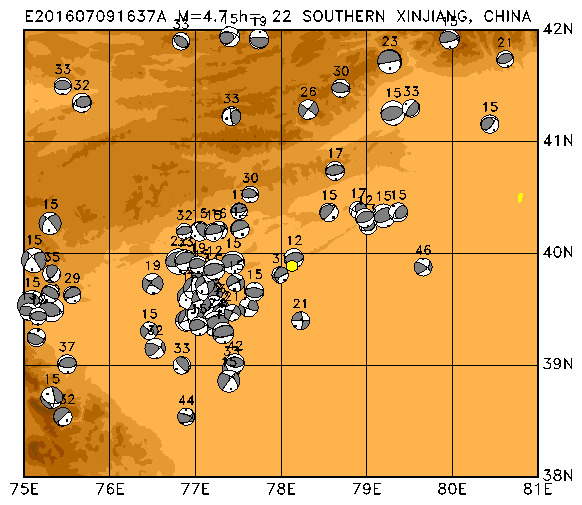 222 SOUTHERN XINJIANG, CHINA PDEW h= 10 M=4.7 E201607250904A