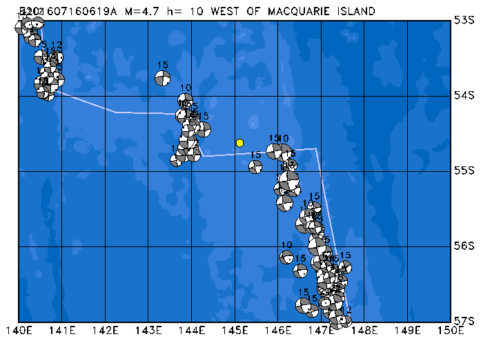 062 WEST OF MACQUARIE ISLAND PDEW h= 10 M=5.4 E201607081648A