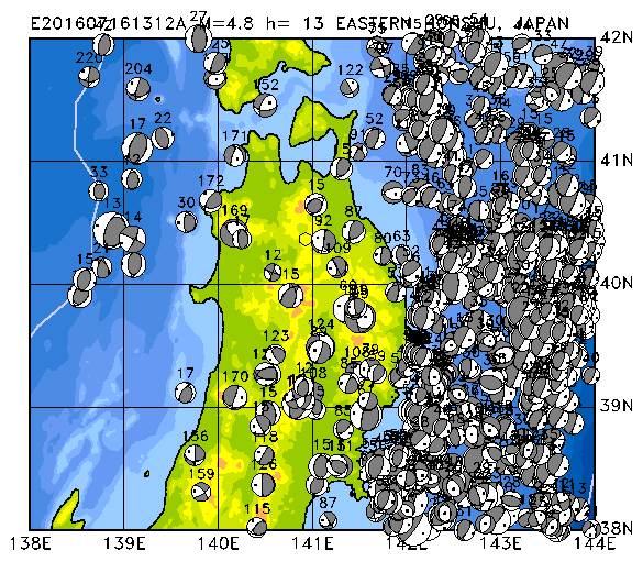 254 NEAR EAST COAST OF HONSHU, JAPAN PDEW h= 46 M=5.3 E201607271447A