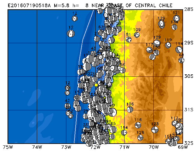 021 NEAR COAST OF CENTRAL CHILE PDEW h= 44 M=4.6 E201607040013A
