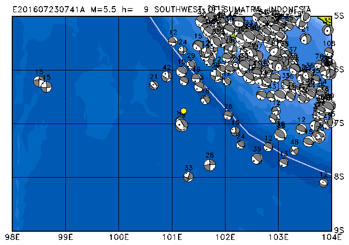 199 SOUTHWEST OF SUMATRA, INDONESIA PDEW h= 9 M=5.5 E201607230741A