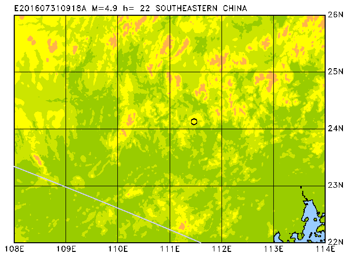 278 SOUTHEASTERN CHINA PDEW h= 23 M=4.9 E201607310918A