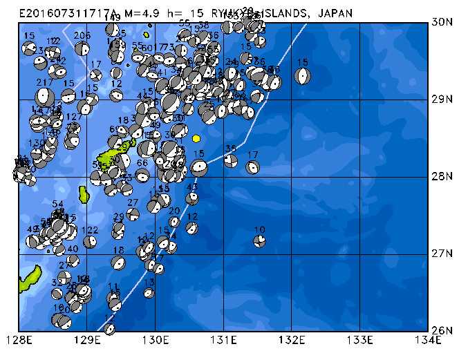 022 RYUKYU ISLANDS, JAPAN PDEW h= 45 M=4.7 E201607040214A