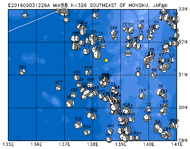 069 SOUTHEAST OF HONSHU, JAPAN PDEW h=327 M=5.0 E201609031226A