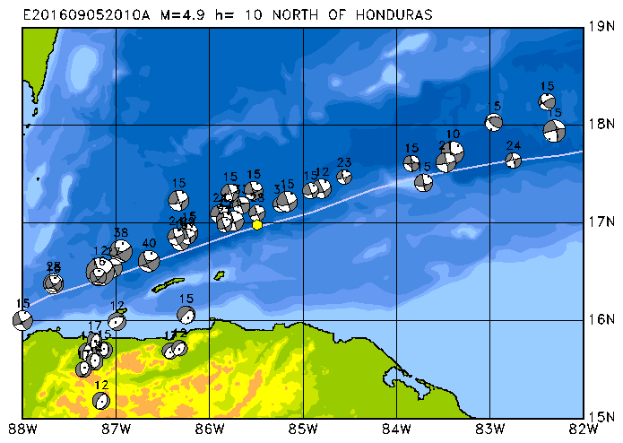 380 NORTH OF HONDURAS PDEW h= 10 M=5.3 E201609292023A