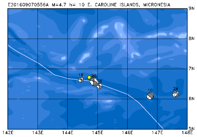 384 W. CAROLINE ISLANDS, MICRONESIA PDEW h= 10 M=4.9 E201609301148A