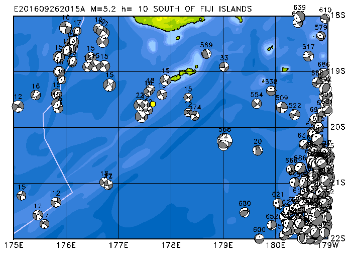 341 SOUTH OF FIJI ISLANDS PDEW h= 10 M=5.2 E201609262015A