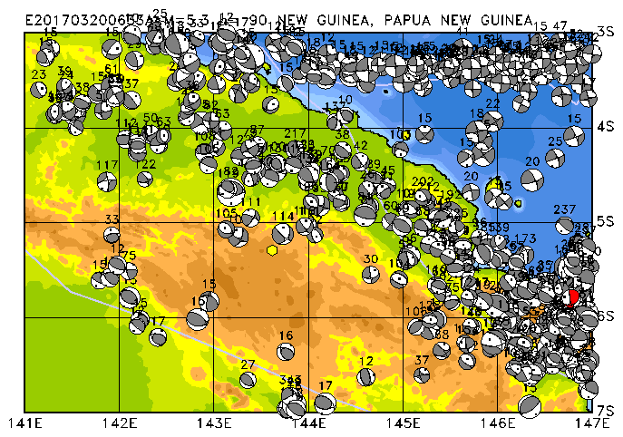 223 EASTERN NEW GUINEA REG., P.N.G. PDEW h= 73 M=5.3 E201703250907A