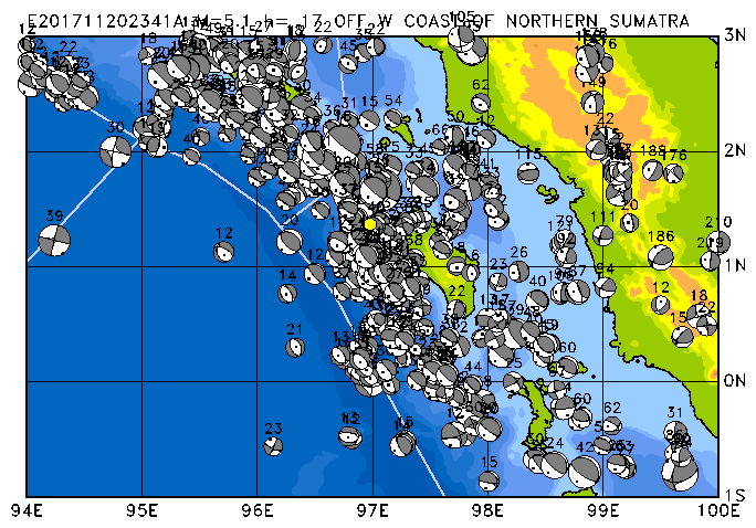 295 OFF W COAST OF NORTHERN SUMATRA PDEW h= 17 M=5.1 E201711202341A