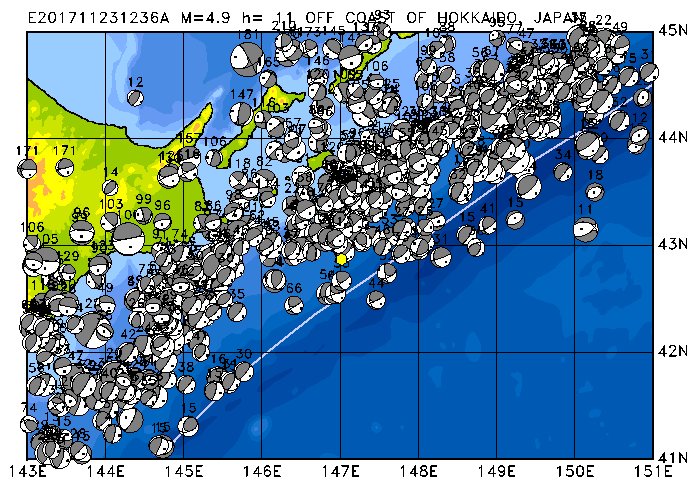 318 OFF COAST OF HOKKAIDO, JAPAN PDEW h= 11 M=4.9 E201711231236A