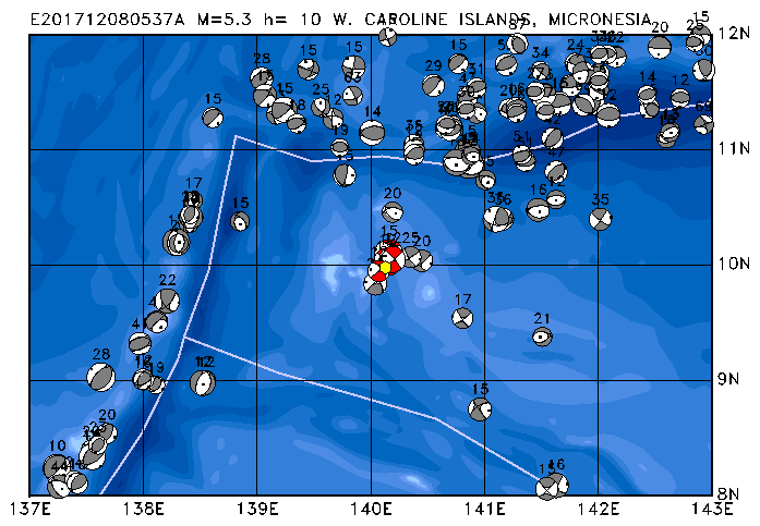 085 W. CAROLINE ISLANDS, MICRONESIA PDEW h= 10 M=5.3 E201712080537A