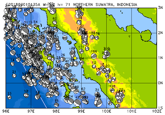 001 NORTHERN SUMATRA, INDONESIA PDEW h= 71 M=5.2 E201803010135A