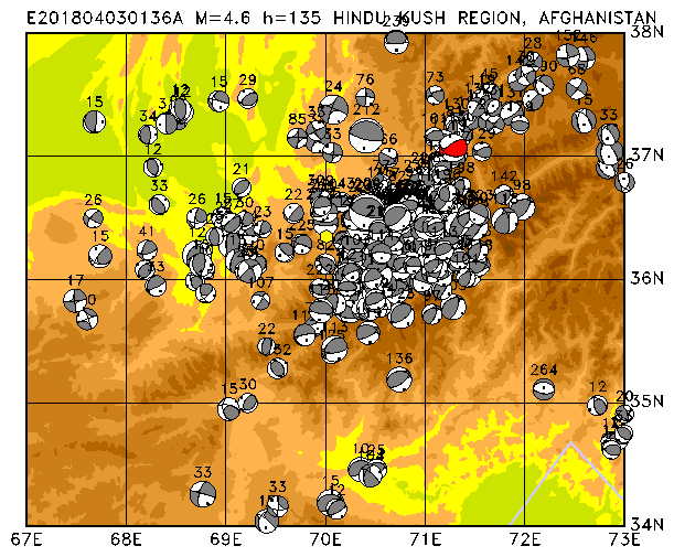 018 HINDU KUSH REGION, AFGHANISTAN PDEW h=135 M=4.6 E201804030136A