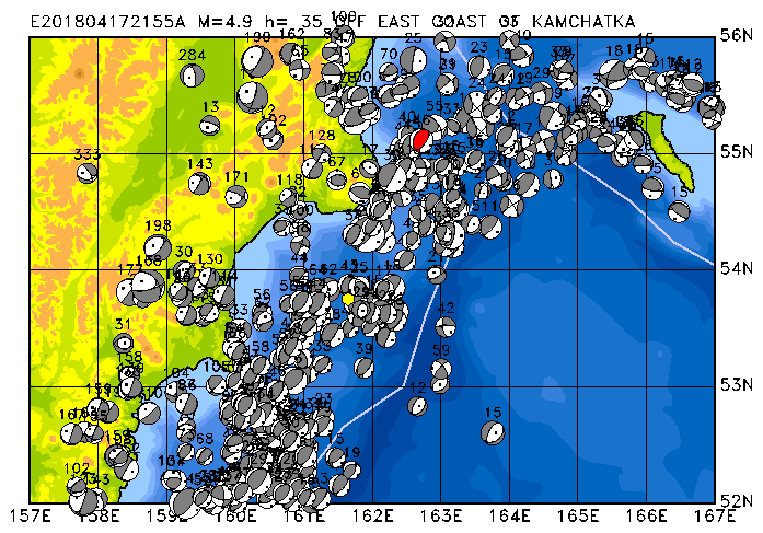 063 NEAR EAST COAST OF KAMCHATKA PDEW h=101 M=4.5 E201804061613A