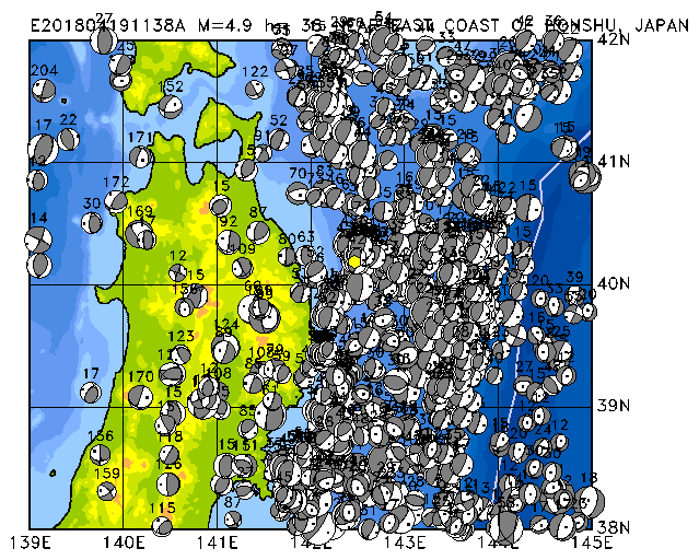 188 NEAR EAST COAST OF HONSHU, JAPAN PDEW h= 39 M=4.9 E201804191138A