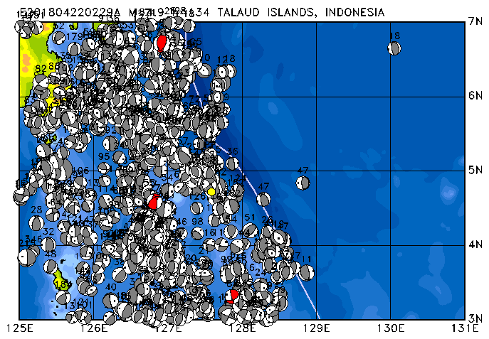 208 TALAUD ISLANDS, INDONESIA PDEW h=134 M=4.9 E201804220229A