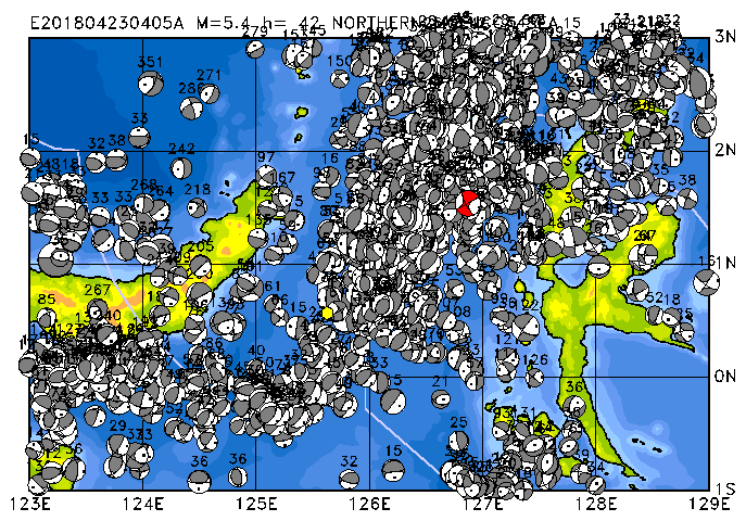 215 NORTHERN MOLUCCA SEA PDEW h= 43 M=5.4 E201804230405A