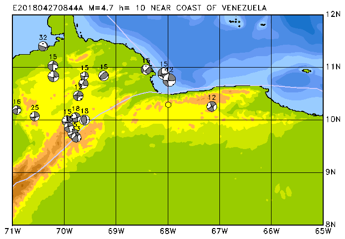 260 NEAR COAST OF VENEZUELA PDEW h= 10 M=4.7 E201804270844A