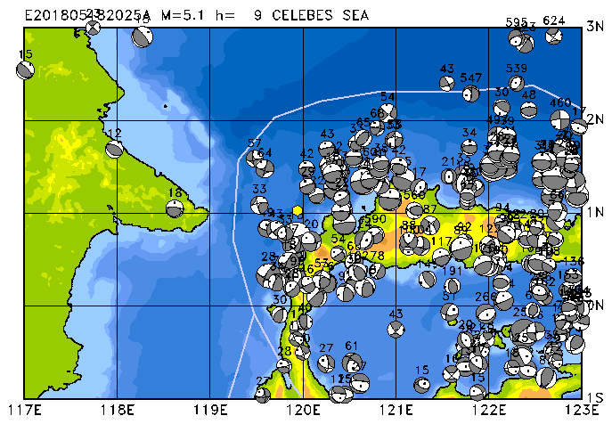 213 NORTHERN MOLUCCA SEA PDEW h= 10 M=5.0 E201805211333A