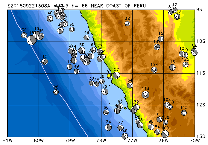 222 NEAR COAST OF PERU PDEW h= 66 M=4.9 E201805221308A
