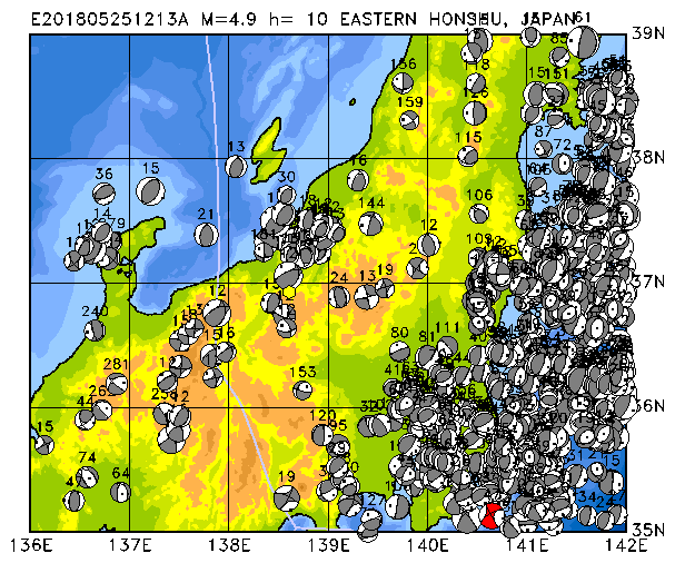 250 EASTERN HONSHU, JAPAN PDEW h= 10 M=4.9 E201805251213A