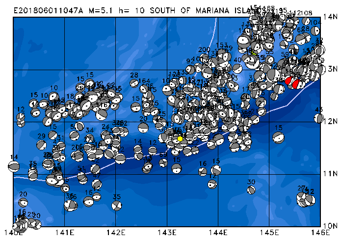 008 SOUTH OF MARIANA ISLANDS PDEW h= 10 M=5.1 E201806011047A