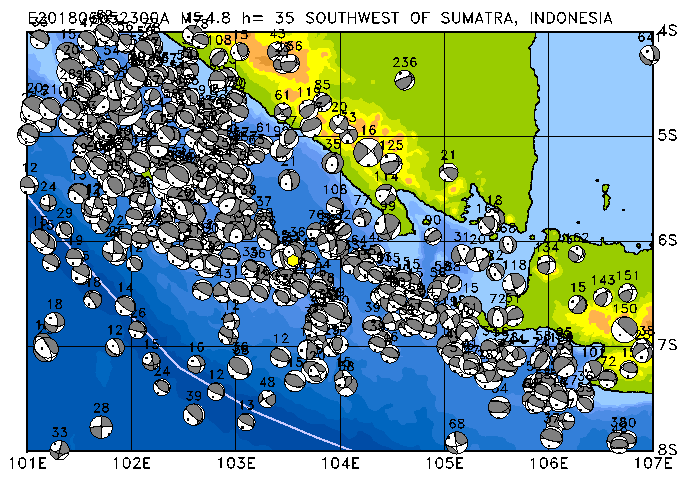 052 SOUTHWEST OF SUMATRA, INDONESIA PDEW h= 35 M=4.8 E201806052300A