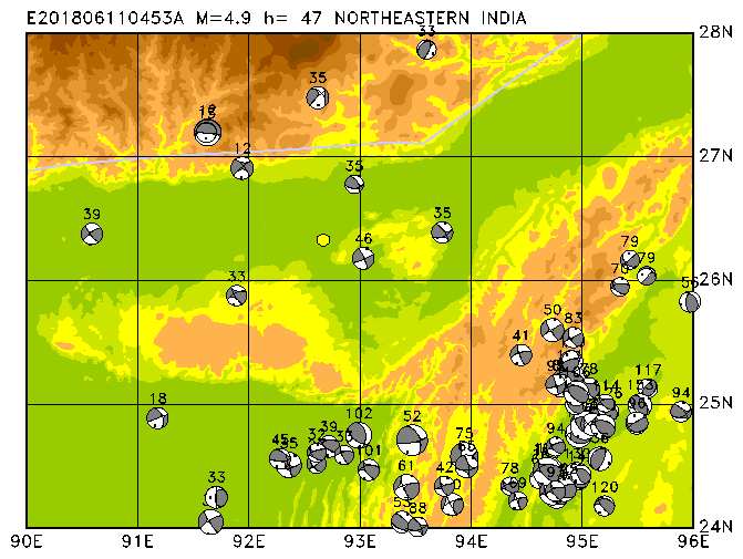014 MYANMAR-INDIA BORDER REGION PDEW h= 39 M=4.9 E201806020546A