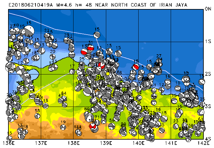 191 NEAR NORTH COAST OF IRIAN JAYA PDEW h= 48 M=4.6 E201806210419A
