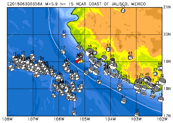 279 NEAR COAST OF JALISCO, MEXICO PDEW h= 15 M=5.9 E201806300356A