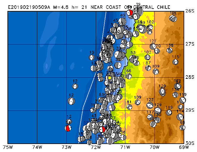 198 NEAR COAST OF CENTRAL CHILE PDEW h= 22 M=4.8 E201902190509A